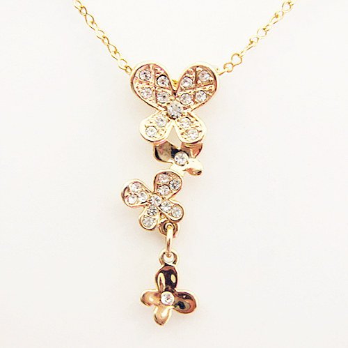 Fashion Inviting 18K RGP Gold Metal Four Flowers Necklace with Top Quality Cubic Zirconia Embedded Overview
